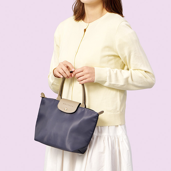 ハンドルとカバー部分には上質な合皮レザーを使用し、上品で高級感のある仕上がりに。オフィスやお出かけ先でも、持つだけで気分が上がるスタイリッシュなデザインです。