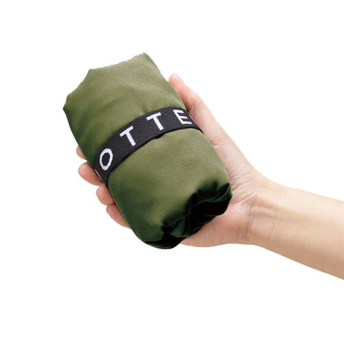 ゴムバンドでくるりとコンパクトにまとめて持ち運びができるエコバッグです。